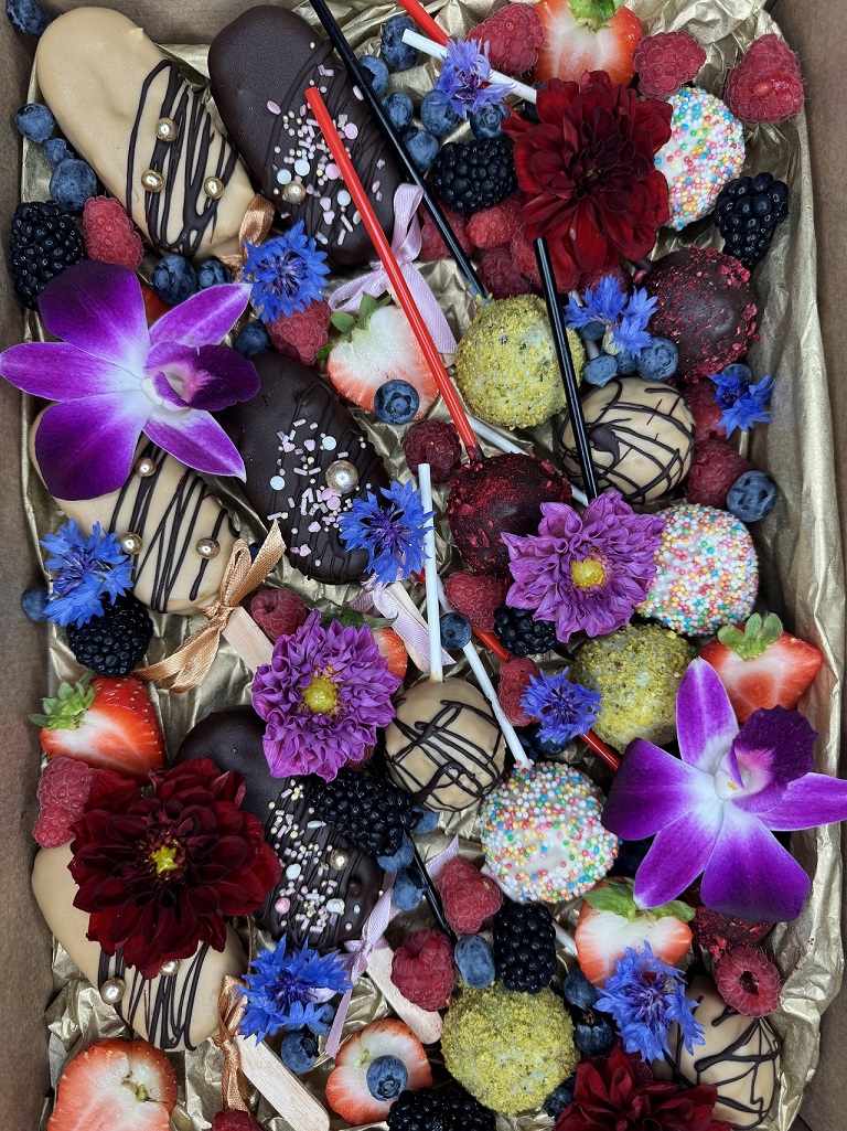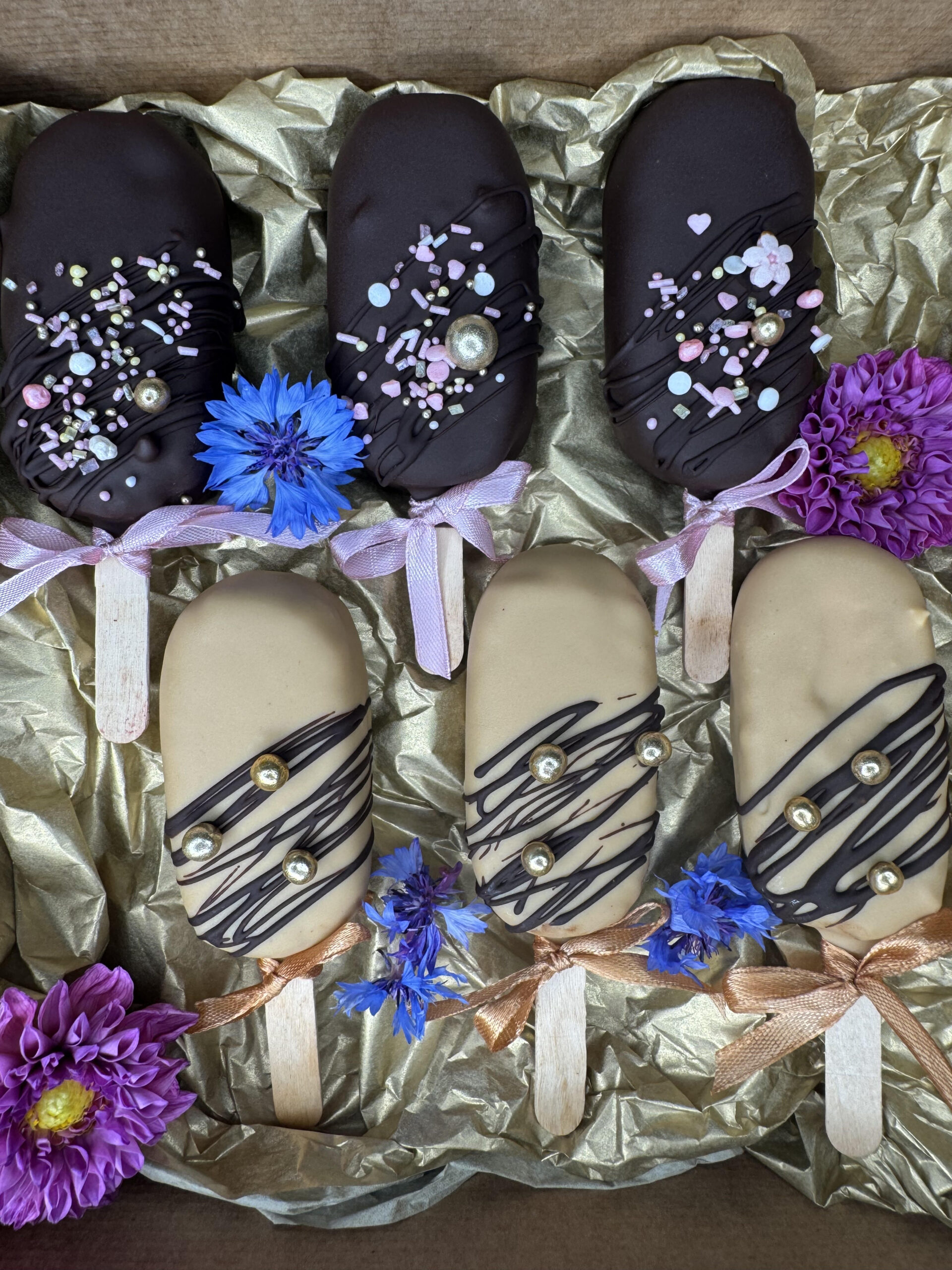 Lizaki cake pops w białej i ciemnej czekoladzie z kolorowymi posypkami 12szt