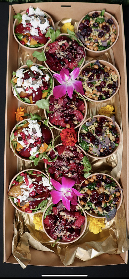 4szt Pieczony burak, gruszka, rukola, orzechy wloskie ,sos balsamiczny
