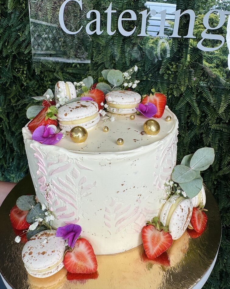 Przystrojony makaronikami i owocami